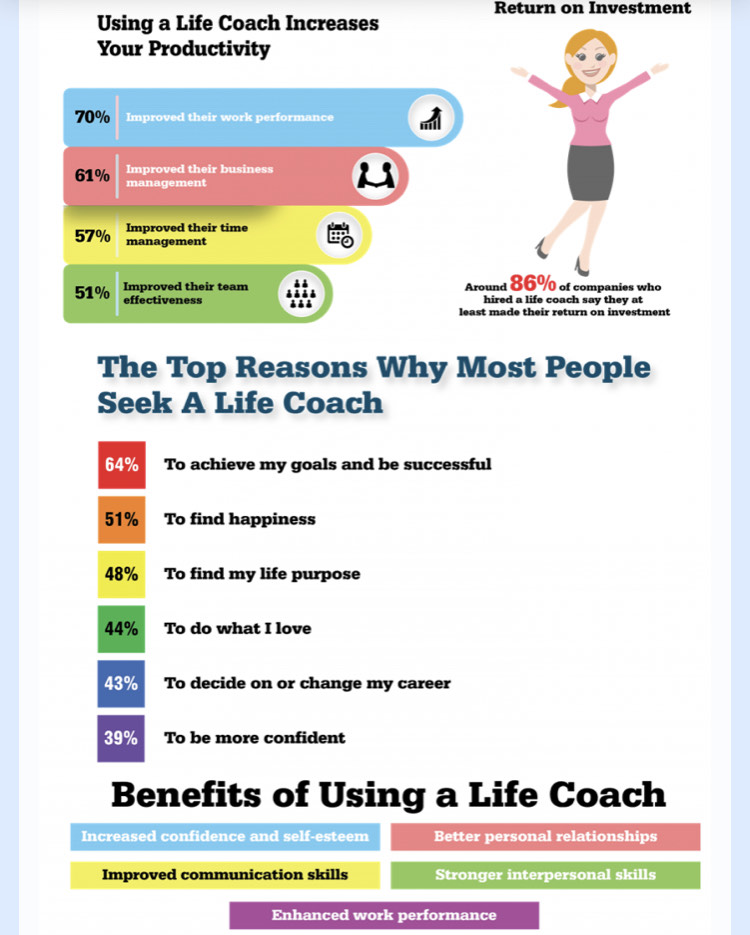 But one of the best ways to become and stay committed is by having that mentor there, cheering you on, allowing you to learn from your mistakes, and helping you make your dreams manifest into reality. A mentor or life coach can help you become the best version of yourself by providing you with an accountability partner and giving you the keys to tackle an imbalanced work/life schedule, improve your relationships, and getting you motivated to take on life’s obstacles. I know we like to think we can do it all on our own, and you are well in your rights to do so, but consider the possibilities in that one change creating a significant impact on your life. Read the stats below and book your first FREE CONSULTATION at the end of this blog.